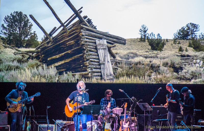 But while that was essentially true for the first set, and certainly enjoyable, the huge video backdrop segued between sets from wide-open-spaces scenery like old farm houses and galloping antelopes, to undulating, pulsating, psychedelic visuals, prompting a second-set outburst of full-throttle Grateful Dead material that surprised and delighted the assemblage.